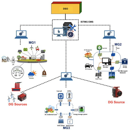 A high-level schematic of an ISTMG depicting the interconnected elements including MGs and DERs [37].
