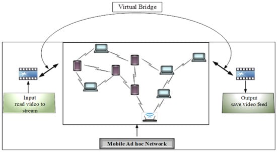 Mobile ad-hoc networks (MANETs) are infrastructure-less networks in which self-configured mobile nodes are interconnected via wireless links []. Due to their decentralized process, such nodes confide in each other to store and transmit packets. Video-packet transmission over MANETs is a challenging task because of the sudden changes in topology and minimal central administration []. Traditional cellular wireless networks demand a high-priced infrastructure for achieving great mobility. However, MANETs cannot require high-priced or wired infrastructure []. Also, conventional wireless networks require a constant network infrastructure with access points or base stations that are eligible to be utilized for situations such as military missions and disaster relief []. In these cases, a high-speed deployment and self-organized network can be employed for certain purposes and particular periods. In general, ad-hoc networks are self-configured, decentralized, self-organized networks and can generate a communication network without confiding in any constant infrastructure []. Advancements in the Internet have changed our way of living by connecting people to the physical world. MANETs are a type of wireless ad-hoc network that allows mobile devices to communicate without relying on infrastructure or control []. Each device acts as a node that can forward, receive, or transmit data packets to other nodes in the network. Nodes include mobiles, laptops, or tablets connected to wireless networks for communication [].