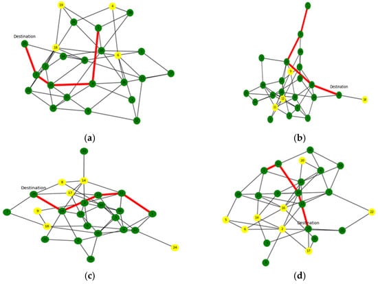 where represents a weighting factor utilized to balance the current measurement data and the previous estimation. Assume the path , in which is a collection of pathways that begins at a source node and ends at a destination node , for instance . Then, denotes the trustworthiness of the path specified by the node . As a result, the path’s trustworthiness is described as
