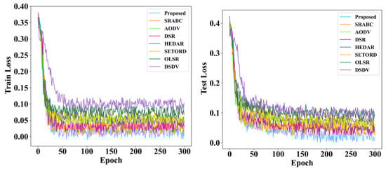 These two procedures take a long time, which prolongs the end-to-end delay. Proactive routing protocols cover many protocols such as the destination sequenced distance vector routing protocol (DSDV), wireless routing protocol (WRP), cluster head gateway switch routing protocol (CGSR), and optimized linked state routing protocol (OLSR) [,]. The OLSR generates a maximum throughput that is scalable and manageable. The fundamental ad-hoc routing solutions are OLSR, AODV, and DSR. Using HELLO and transmission control, the OLSR is a proactive link state routing protocol enhanced for mobile ad-hoc networks that determines and extends the information throughout the MANET []. Using shortest-path forwarding, each node in the network determines the next hop destination of other nodes. Since the OLSR’s primary function is to store and update its routes, it can provide a route instantaneously whenever it is needed []. The OLSR protocol has been used in several recent studies to transmit videos more efficiently and with better results than with other conventional protocols. Combining deep-learning techniques can result in higher performance and further increase the efficiency of the OLSR. For video transmissions, the proposed study therefore used the OLSR protocol with deep learning.
