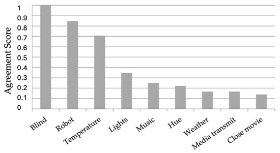Pull the blind down, the gesture chain would be b →?”. The agreement scores reflect, in a single number, the degree of consensus among participants. In particular, agreement is calculated as proposed by Wobbrock et al. in [