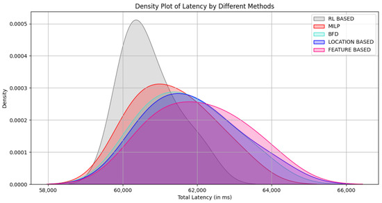 Probability density function of latency by different methods.
