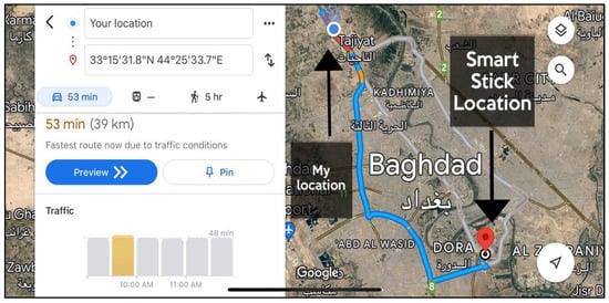 A 3.3 V/1500 mAh lithium-ion battery powers the whole SS system. These high-capacity batteries guarantee reliable and consistent power for all components, contributing to the overall efficacy and self-sufficiency of the SS. In addition, a power reduction system, such as a sleep/active strategy [39], can develop the overall battery lifetime of the system. Furthermore, an energy harvesting system, such as wireless power transfer [40], can be used to charge the battery of the SS wirelessly. The SS system for VIP is a comprehensive and technically advanced system that utilizes sensor data, microcontroller application, and real-time communication to enhance VIP safety and navigation experiences. However, the SS is aimed for outside use and does not work efficiently indoors. This limitation is because the GPS is not suitable for indoor applications due to many indoor surroundings’ limitations [41].