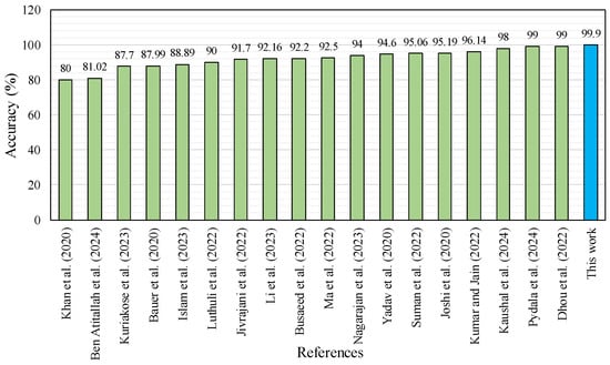 Comparison of accuracy of the SS system with previous works [1,9,10,13,17,27,28,36,54,55,56,57,58,60,61,62,63,64].