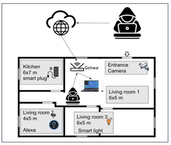 In recent years, technologies such as the Internet of Things (IoT), Cloud Computing, and Artificial Intelligence (AI) have become increasingly popular. The rapid proliferation of IoT devices, particularly in the context of smart homes, has led to a significant increase in the number of devices connected to the Internet, resulting in a substantial rise in the volume of data generated by these devices []. Smart homes utilize a variety of technologies and standards, which can often be incompatible. However, this diversity presents new security vulnerabilities, leaving them vulnerable and making IoT environments attractive targets for cyberattacks.