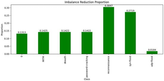 IoT applications often rely on lightweight communication protocols and devices with limited computing and storage capabilities. This makes it challenging to implement security measures that require high computational power. Due to their unique characteristics, traditional security tools such as firewalls and encryption may not perfectly fit IoT systems. For instance, it is difficult to detect attacks like DoS, MITM, and password cracking using traditional programming methods. Security is a critical component in safeguarding IoT environments by identifying malicious activities and preventing potential breaches. Therefore, researchers have improved security mechanisms by employing advanced detection techniques, such as machine learning based on Intrusion Detection System (IDS) ML-based IDS methods, which utilize various algorithms to distinguish between normal and malicious behaviors by classifying the data based on selected features [,,]. However, previous studies often overlook the challenge of data imbalance, which tends to bias classification models towards dominant classes with more attack samples. In smart home environments, for example, this significantly impacts the performance of the often used security applications and IDS. Amongst these are firewalls and Security Information and Event Management (SIEM) systems, which might fail to accurately detect and correlate sporadic attack types, resulting in false detection instances or alarms. In a similar manner, Endpoint Detection and Response (EDR) applications and anomaly detection systems, which recognize instances of anomalies in the context of normal behavior, may disregard less frequent but nonetheless dangerous anomalies if such cases are underrepresented in the data. Implemented smart home behavioral analytics solutions, usually used to collect user behavior data, might also be unsuccessful in detecting advanced insider attacks or vulnerable devices because of the lack of various attack scenarios in the trained dataset.