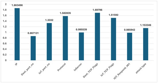 In ore der to evaluate our “Joint Dataset” created for this research, we select the BoT-IoT sub-dataset [,] as a benchmark datset. The BoT-IoT sub-dataset consists of 733,705 records, which were originally extracted from a 7-million-record dataset that was created in the Cyber Range Lab of UNSW Canberra Cyber. This “Joint Dataset” was developed to support research in network security, with a special focus on attacks in IoT environments. Datapoints corresponding to four attack types and a normal state were extracted and compiled into a benchmark dataset for our experiment. Table 3 and Table 4 describe the categorical and numerical values of the BoT-IoT sub-dataset. The classes being represented are:
