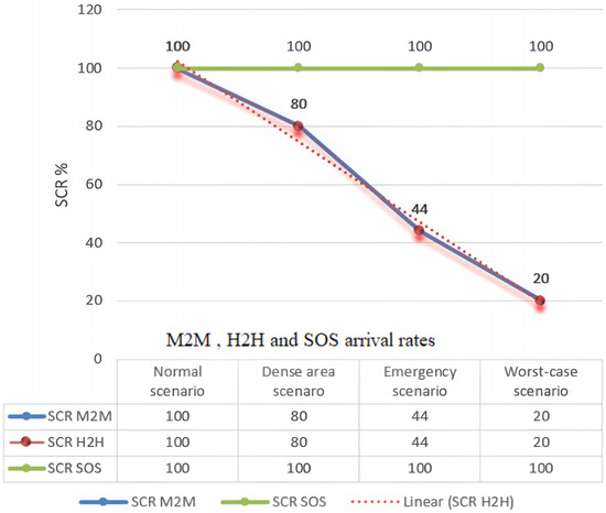 SCR of H2H, SOS and M2M for emergency-case scenario.