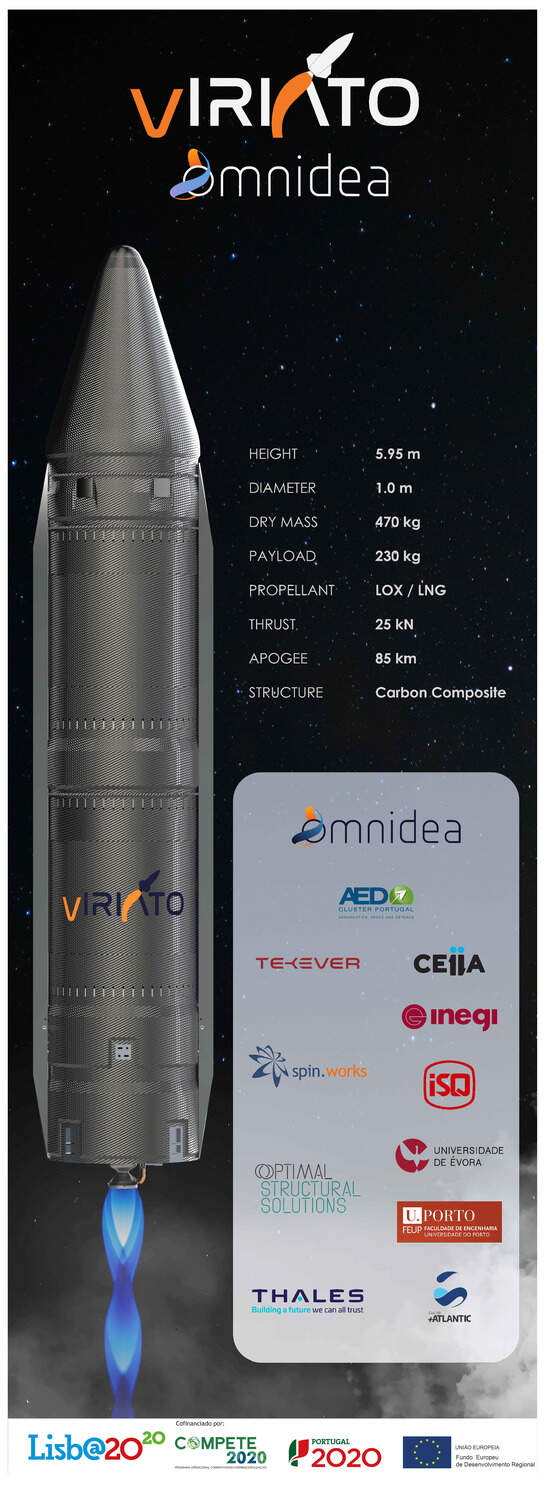 The suborbital launcher is based on the second stage of a large-scale microsatellite launcher, and should use liquid methane and oxygen as propellants, have an engine capable of producing at least 25 kN, possess carbon fiber structural tanks, attain a 230 kg load capacity and achieve an altitude of approximately 85 km. These specifications, as well as the project’s consortium, are presented in Figure 1.