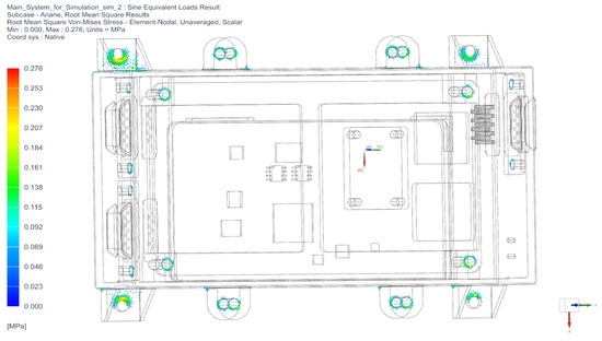 An example of such stress distribution of the exterior system is presented in Figure 3. The highest stress values are located where fasteners are installed to connect the different components, as expected. A similar stress distribution is present in the main system. For reference, the highest stress value in either system is MPa.