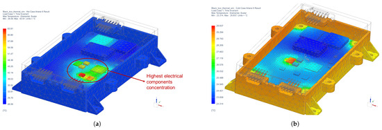 where P is the power consumption value in , V is the approximate component volume in , and is the heat generation value in . Both power consumption and volume of the components can be obtained through their respective datasheets.