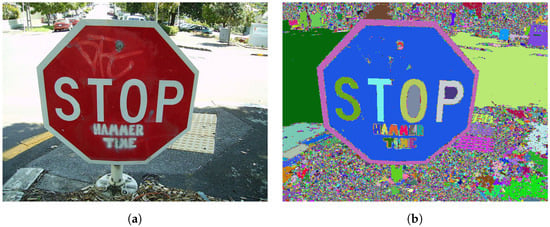 - Felzenszwalb, P.F.; Huttenlocher, D.P. Efficient graph-based image segmentation. Int. J. Comput. Vis. 2004, 59, 167–181. [Google Scholar] [CrossRef]