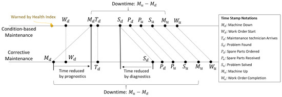 | Maintenance time analysis | Maintenance time work orders Maintenance reports, repair/resolution reports | “What components of maintenance activity can be reduced through the use of CBM?” Potential improvement of downtime due to maintenance (Figure 4) |