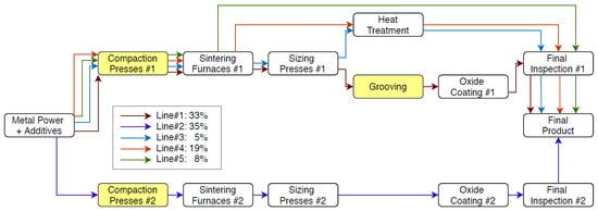| Unit: Minutes | Compaction Press (CP) | Sintering Furnace (SF) | Sizing Press (SP) | Grooving (GV) | Oxide Coating (OC) | Heat Treatment (HT) | Final Inspection (FI) |