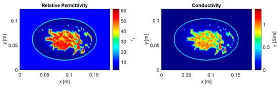 where σ is the conductivity, and εr is the relative permittivity. This linear approximation provides computational efficiency while maintaining sufficient accuracy for microwave imaging applications. Notably, under this approximation, the temperature variation is determined from the change in relative permittivity.