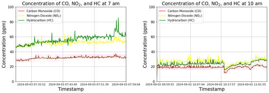 The main sources of common pollutants on campus are automobile emissions and industrial operations. They produce NOx, HC, and CO [15,16]. If people absorb these substances, they may experience serious health consequences, such as allergies, chronic cardiovascular disorders, and respiratory problems. With these things in mind, it is critical to keep an eye on campus air quality to locate pollution hotspots and understand the consequences they have on the ecosystem and human health.