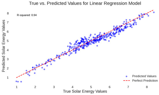 Figure 16 presents the bagging ensemble regressor model using a scatter plot with a regression line that represents a match between the forecasted and actual values for Orlando. The stacking regressor performed the best out of the three ensemble learning methods with an R-squared value of 0.9339.