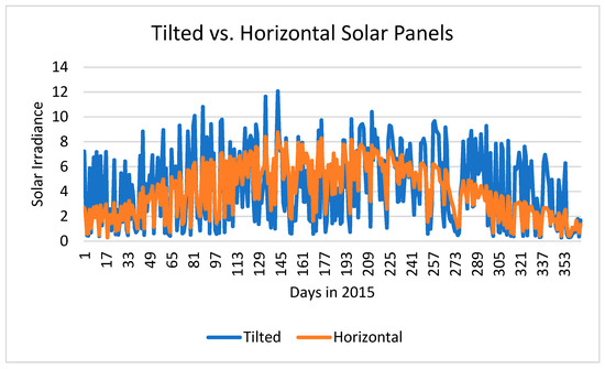 During the year 2015, New York City received 7% more solar irradiance from tilted panels than from a horizontal installation.