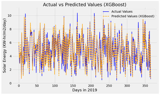 Extreme Gradient Boosting (XGBR): This method builds sequential models that correct errors from previous iterations, making it efficient for handling complex datasets. XGBR demonstrated strong performance, with metrics closely aligned with those of RF, particularly in capturing subtle variations in solar irradiance data.