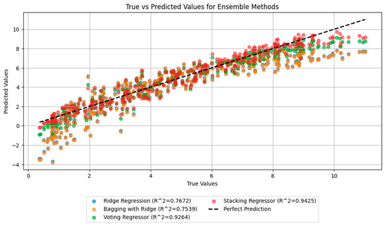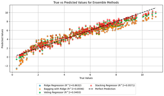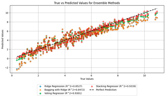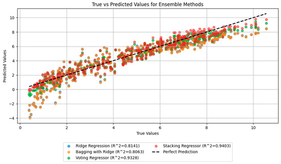 The stacking regressor achieved the highest performance among the three ensemble learning methods. Stacking, or stacked generalization, integrates multiple regression models by training a meta-regressor on their combined predictions. This approach excels due to several factors: it leverages model diversity, effectively integrates the meta-learner, improves overall performance, handles nonlinear and complex patterns, and enhances robustness. Success in stacking is typically influenced by the diversity and quality of the base models and the fine-tuning of the meta-learner, which blends the base models’ predictions effectively. The efficacy of a stacked model can vary based on the selection of base models, data characteristics, and integration within the stacking framework.