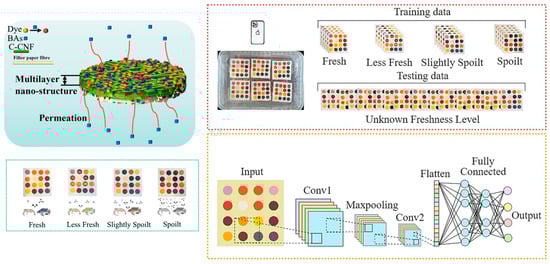 - Jiang, C.; Guo, A.; Li, Y.; Wang, Y.; Sun, J.; Chen, Z.; Chen, X.; Ma, Q. Inspired by human olfactory system: Deep-learning-assisted portable chemo-responsive dye-based odor sensor array for the rapid sensing of shrimp and fish freshness. Chem. Eng. J. 2024, 484, 149283. [Google Scholar] [CrossRef]