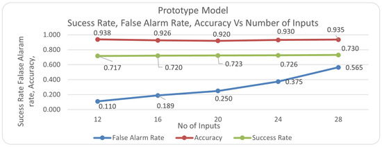 Prototype—Number of Inputs vs. Success Rate, False Alarm Rate, Accuracy.