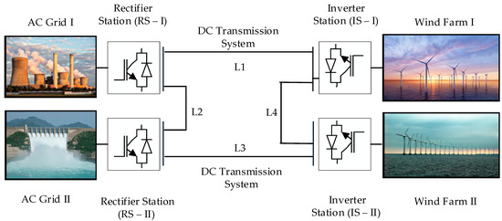 In the literature, several methods have been formulated based on machine learning [16]. A long short-term memory-based support vector machine (LSTM-SVM) fusion model has been developed to explore the advantages of feature extraction by long short-term memory (LSTM) and classification by support vector machine (SVM) [14]. A wavelet entropy-based support vector machine has been made to analyze the accuracy and rapidness against transient faults in HVDC transmission lines [17]. A K-nearest neighbor and support vector machine-based machine learning technique has been developed for different fault locations and types. This protection strategy works on one terminal measurement [18]. A Hilbert–Huang transform-based convolutional neural network has been employed for a double-ended unsynchronized HVDC transmission system. This method is reliable in identifying fault locations at high resistances [19]. A discrete wavelet has been embedded with a fuzzy neural pattern recognizer for the identification of traveling waves generated from the fault locations on DC transmission lines. This method is demonstrably useful for far-distant-located renewable energy sources (RES)-integrated MT-HVDC systems [20]. Shannon’s entropy and signal’s energy, evaluated through the coefficient of wavelet transform, has been employed in extreme machine learning for the estimation of single-line-to-ground fault [21]. For offshore windfarms-based MT-HVDC systems, a fuzzy logic voter system has been designed for the identification of traveling waves. A discrete wavelet analyzer has been employed for the decomposition of traveling waves for fault estimation [22]. The rapid interruption of DC faults is the main objective of protection in MT-HVDC systems [23]. The traveling wave’s velocity and reflection coefficient are used to estimate the natural frequency, which in turn is used to evaluate the fault location with the help of machine learning techniques [24,25]. Reduced overlapping in traveling waves, robustness against attenuation, and variable ground resistances in VSC-HVDC systems are resolved by the protection technique, based on a stacked auto-encoder [26]. Limited window data are required for the estimation of faults in MT-HVDC systems by the application of the electromagnetic time reversal technique [27]. Wavefronts are detected by a simplified machine learning algorithm working on morphological filters and structuring elements. The detected wavefronts are then used for the estimation of fault location [28]. The speed of traveling waves varies with the fault distance. The accuracy is then analyzed for the estimation of fault location. These methods not only ensure the rapidity of the protection system, but also the effective estimation of fault location. One of the major challenges observed in research is that fault resistance and ground resistance effects are not analyzed comprehensively [29].