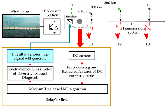 Proposed structure of real-time implementation of medium tree-based machine learning algorithm for fault diagnosis in MT-HVDC systems.
