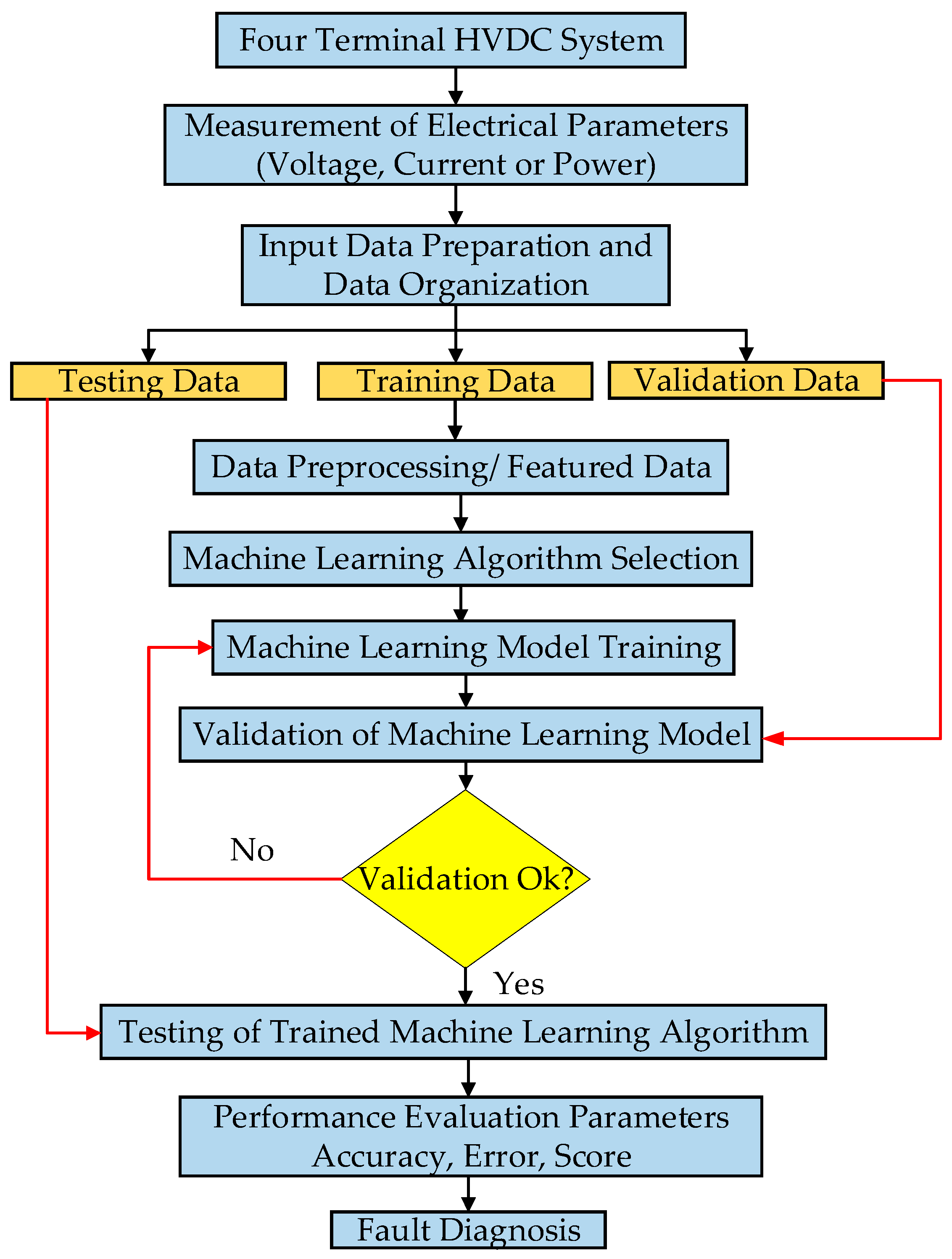 Proposed flow chart of ML-based fault diagnosis in MT-HVDC system.