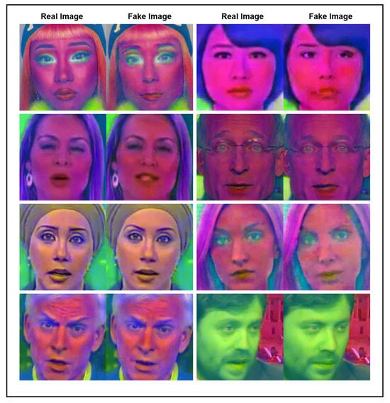 Object detection: Object detection tasks in computer vision [17,18,19,20,21] have been a cornerstone of Artificial Intelligence (AI), with early works laying the foundation for object recognition and feature extraction using classical methods [22]. Ref. [23] proposed a CNN-based approach that analyzed the spatial inconsistencies in facial regions to detect manipulated content. Contrastive learning, a self-supervised learning approach, has recently emerged as a powerful paradigm for learning robust feature representations by contrasting positive and negative pairs in latent space [24,25,26]. The authors of [27] proposed a novel deepfake detection model leveraging contrastive learning, cross-modality data augmentation (SRM and RGB), and a multi-scale feature enhancement module to improve the generalization across known and unknown manipulations. In [28], the Hybrid Model for Deepfake Detection (HMDD) was proposed, focusing on improving the feature scales and leveraging attributes like background comparisons, eye-blinking patterns, facial artifacts, and pose estimation to enhance the accuracy and efficiency of deepfake detection. Recognizing that deepfakes can affect multiple modalities, recent research has explored the integration of audio and visual data for detection. Ref. [29] developed a multimodal approach that analyzed both facial expressions and voice patterns to improve the detection accuracy. Haliassos et al. [30] proposed a method that examined the lip-sync discrepancies between audio and visual streams, identifying inconsistencies indicative of deepfakes. For instance, hybrid frameworks like DeepfakeStack [31] achieve high accuracy but suffer from overfitting and resource intensity, underscoring the need for efficient architectures like ours.