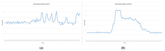 Energy load profiles of the consumers (a) from area I; (b) from area III.