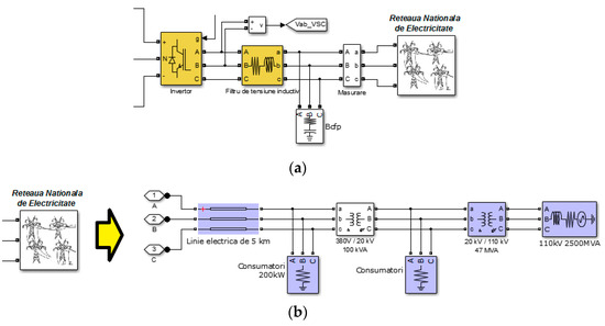 The low-voltage grid is shown in Figure 8a. It is formed of the following blocks: