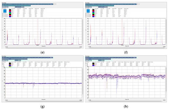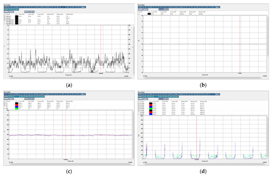 The measurements were carried out using the power quality analyser CA8435 QualistarPlus from Chauvin Arnoux with Power Analyzer Transfer v3.2.0 software, and were performed over a week (11 May 2024, 14:10–15 May 2024, 14:00) on the grid-connected PV system of 83.6 kW in Dambovita, Romania. Such measurements were made for other grid-connected PV systems, and parameter values were obtained that fall within the limits allowed by the quality standards of the produced energy. This analyser is a precise monitoring device that complies with international measurement standards (SR EN 61000-4-30) and can perform measurements according to the limits set by SR EN 50160. Table 4 compares standard limits with measured values.