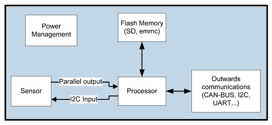 - Sensor block: composed of the CMOS sensor, the power supply management of the sensor and parallel and series communication interfaces;