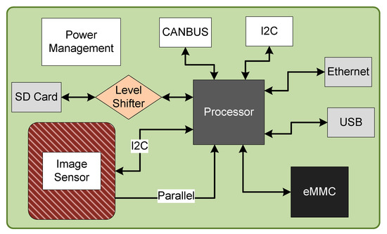 Based on the previous research (Section 2) and the conception of the general architecture of the optical imaging system (Figure 1), the authors proceed with the design of the electronic conception of the STR breadboard to meet the following five requirements: