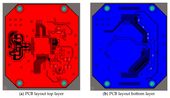 The processor breadboard provides sufficient space for integrating essential components while maintaining a compact footprint. The processor breadboard layout designed in Altium Designer is shown in Figure 6.