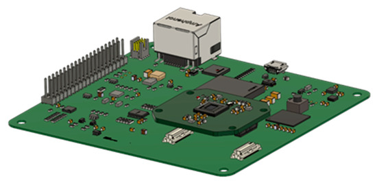 To integrate the image sensor with the processor PCBs, an integrated PCB was carefully designed in Altium Designer and the corresponding 3D model is shown in Figure 7.