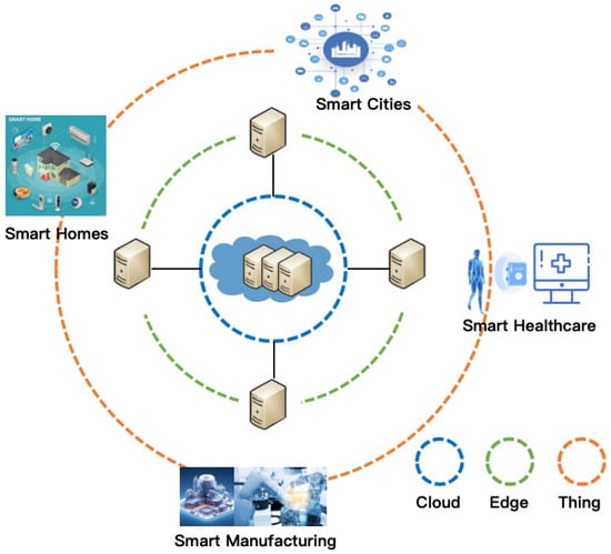 This classical architecture partitions computing responsibilities across three layers: cloud, edge, and end devices (as illustrated in Figure 2). The cloud layer is responsible for macro-level orchestration, historical data analysis, and global decision-making. The edge layer enables near-source processing and real-time response, while the end layer, comprising sensors and mobile devices, conducts lightweight data acquisition and preliminary computation.