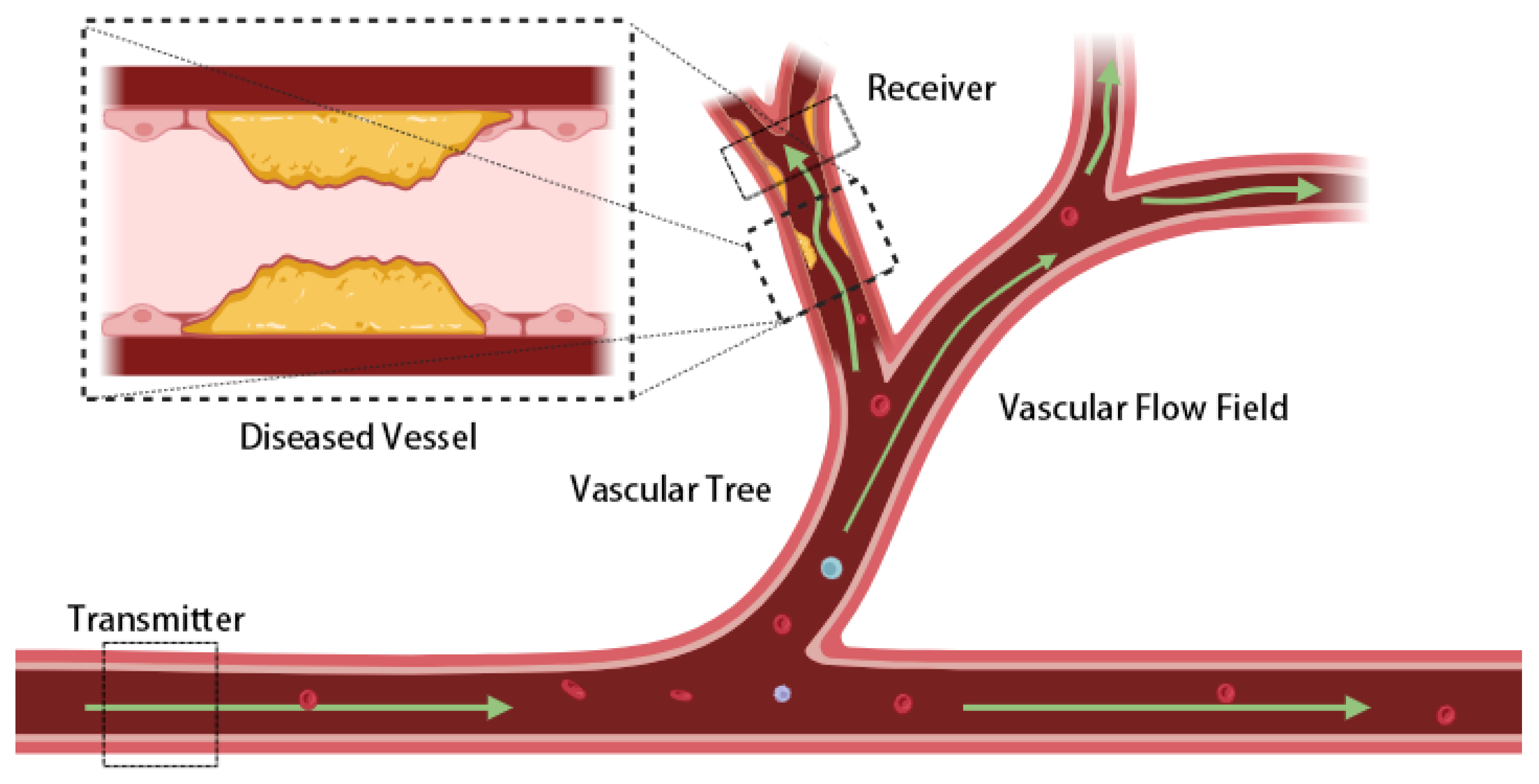 - Hofmann, P.; Schmidt, S.; Wietfeld, A.; Zhou, P.; Fuchtmann, J.; Fitzek, F.H.P. A molecular communication perspective on detecting arterial plaque formation. IEEE Trans. Mol. Biol. Multi-Scale Commun. 2024, 10, 458–463. [Google Scholar] [CrossRef]