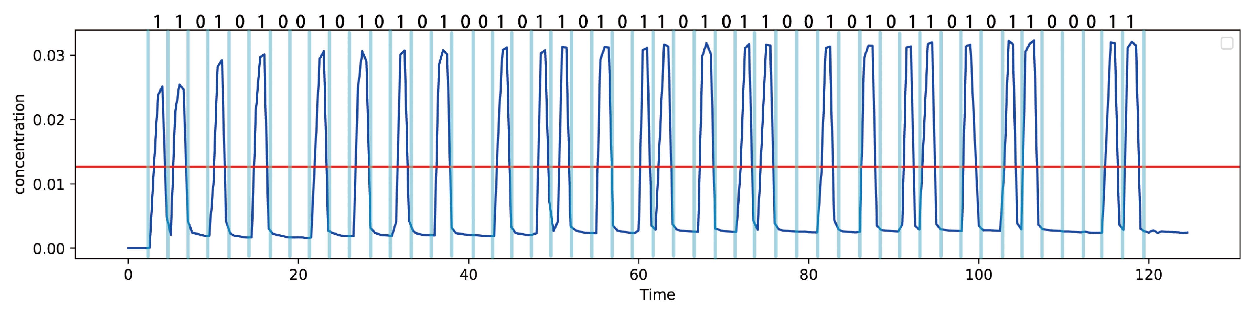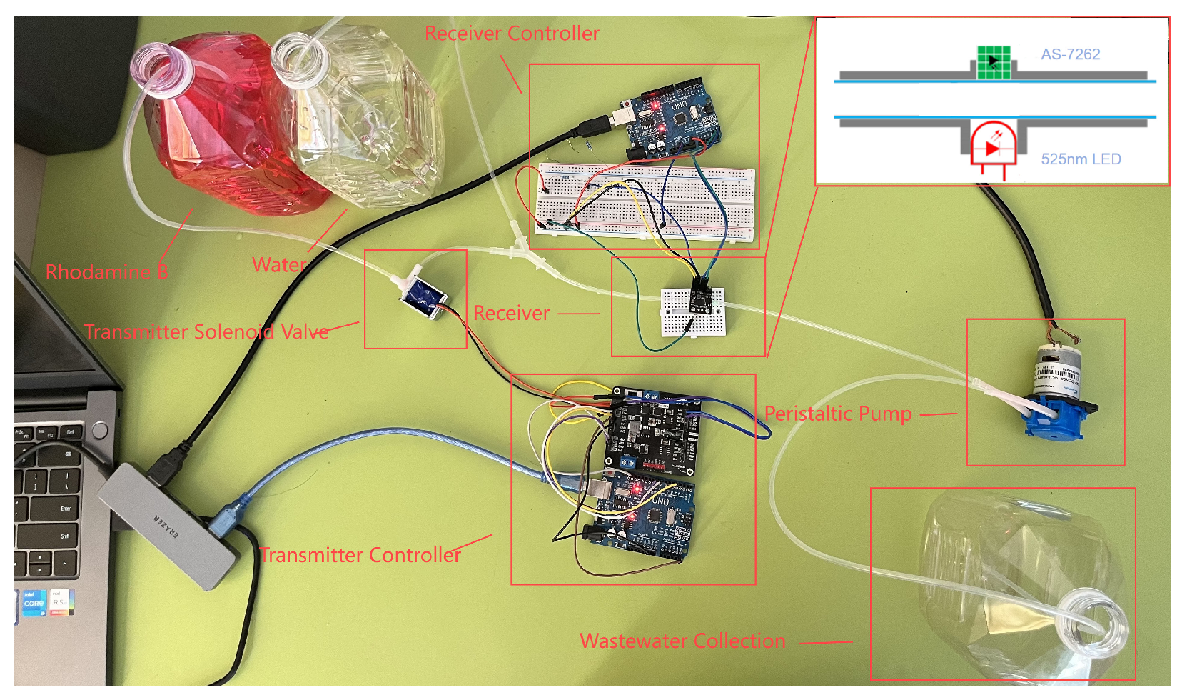 - Shao, Z.; Wang, X.; Lu, P.; Long, X.; Song, J. Molecular Communication Platform Based on Fluorescence Excitation: Design and Implementation. In Proceedings of the 2024 4th International Conference on Blockchain Technology and Information Security, Wuhan, China, 17–19 August 2024; pp. 249–257. [Google Scholar]