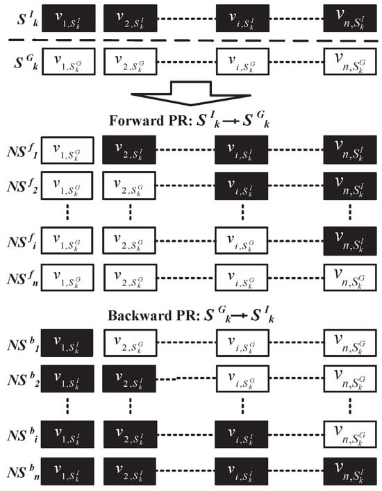 where the forward neighborhood solution set is generated during the traversal of the path , and the backward neighborhood solution set is generated during the traversal of the path , as shown in Figure 3.
