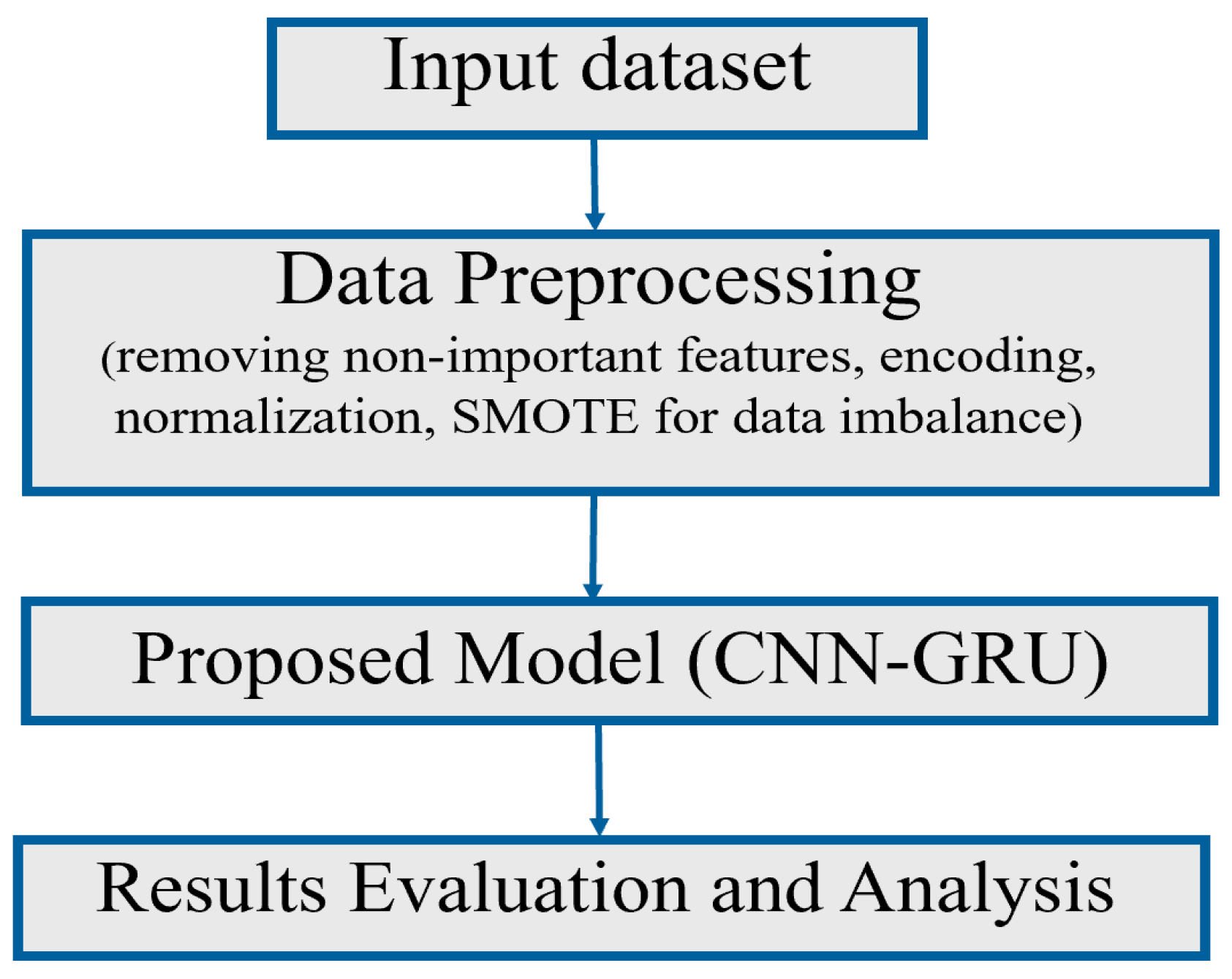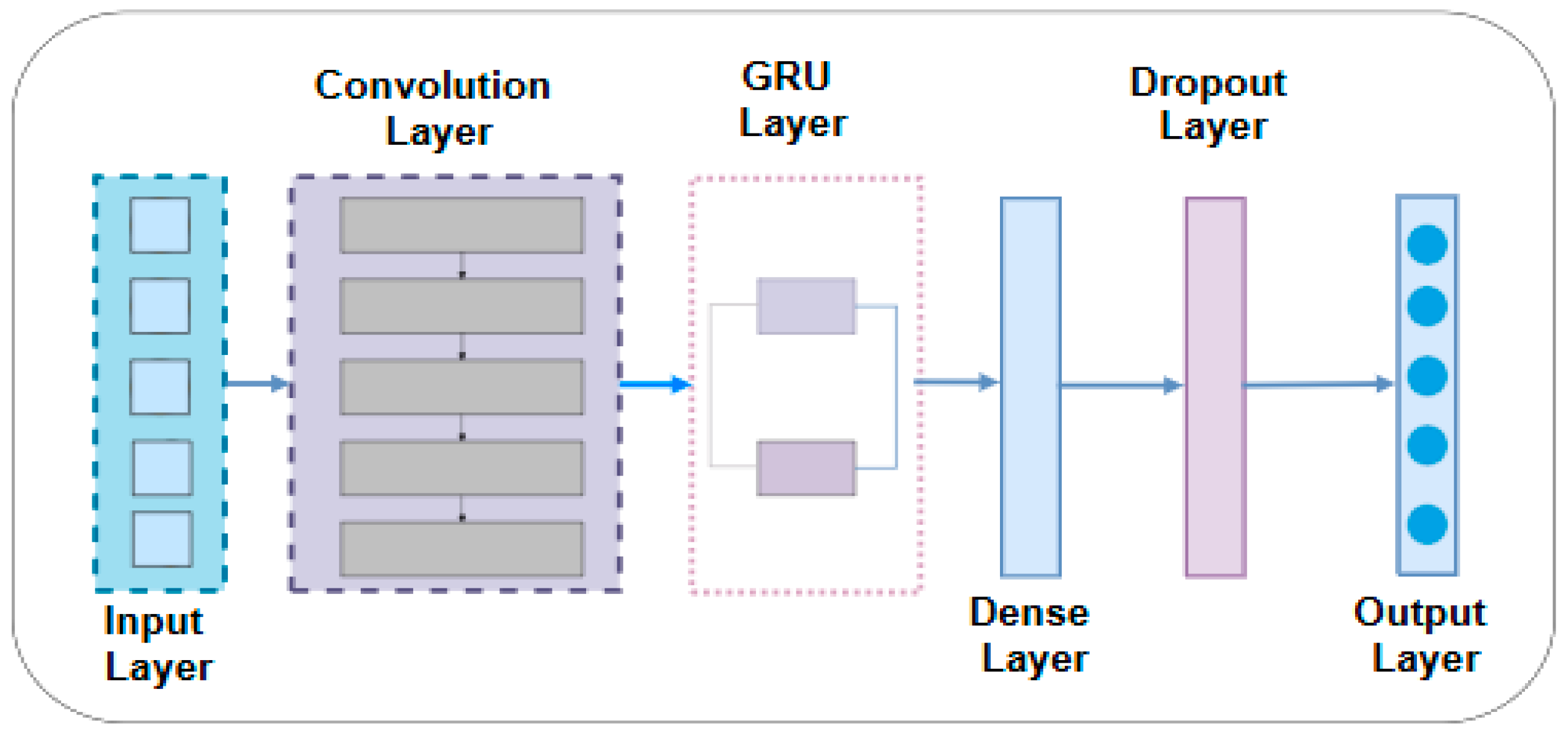 - Using two benchmark datasets, the Bot-IoT and IoTID20 datasets, we develop a hybrid deep learning model using a convolutional neural network (CNN) and a gated recurrent unit (GRU) in conjunction with various regularization and optimization techniques to increase prediction accuracy while reducing computational complexity.