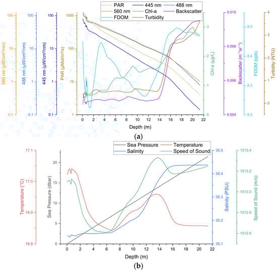 - Vasilkov, A.P.; Goldin, Y.A.; Gureev, B.A.; Hoge, F.E.; Swift, R.N.; Wright, C.W. Airborne polarized lidar detection of scattering layers in the ocean. Appl. Opt. 2001, 40, 4353–4364. [Google Scholar] [CrossRef]
