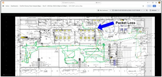 This result is particularly significant. The dashboard successfully illustrated three out of four loss events as direct outcomes of Wi-Fi roaming, with the fourth linked to a possible fallback to a more interference-prone 2.4 GHz band. The ability to visually pinpoint the timing, location, and cause of packet loss highlights the practical value of the system, not only for real-time monitoring but also for informed network protocol selection in mobile industrial environments.