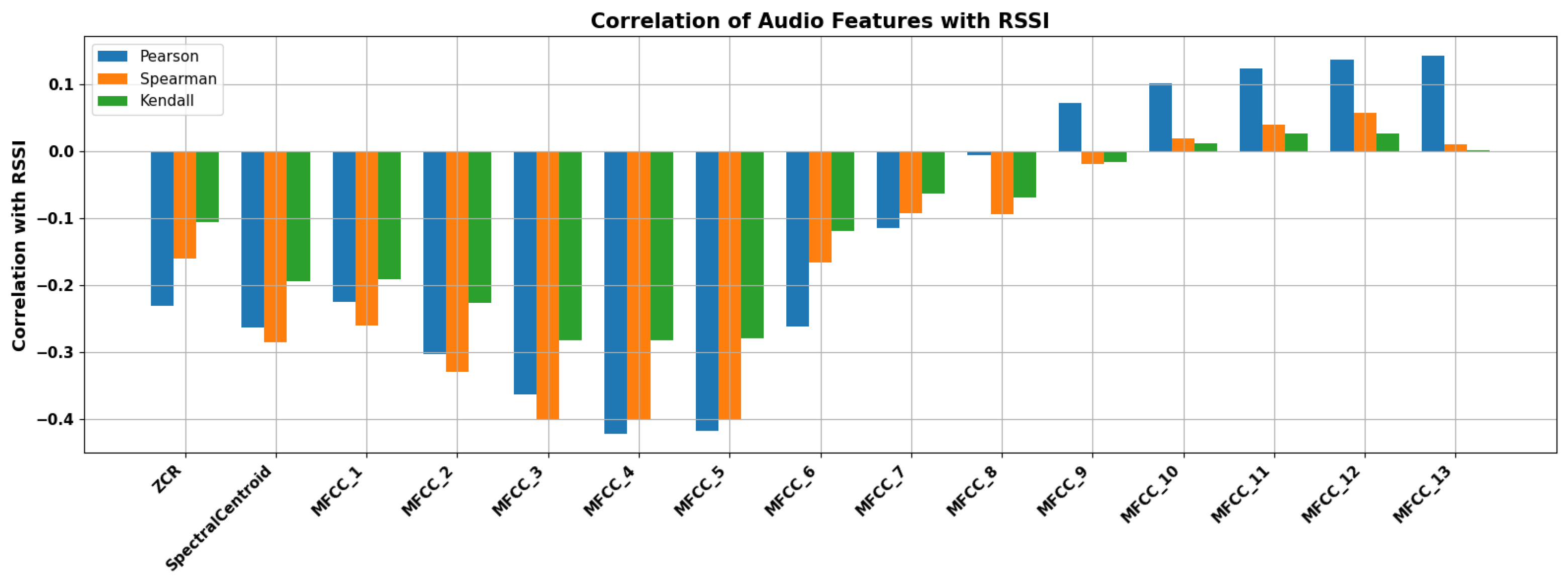 - We show a strong correlation between RSSI values and the MFCC features of audio captured during wireless activity.