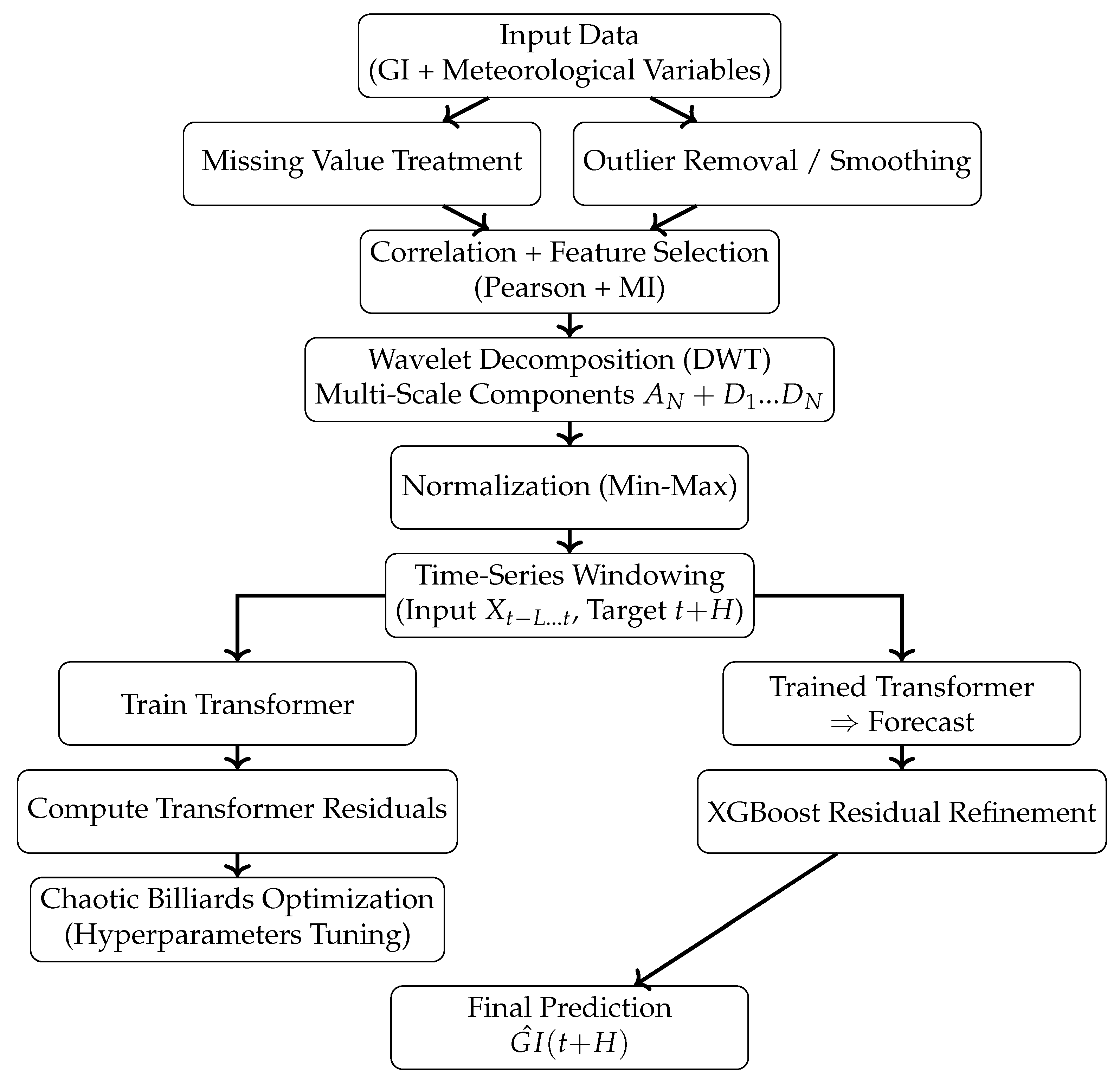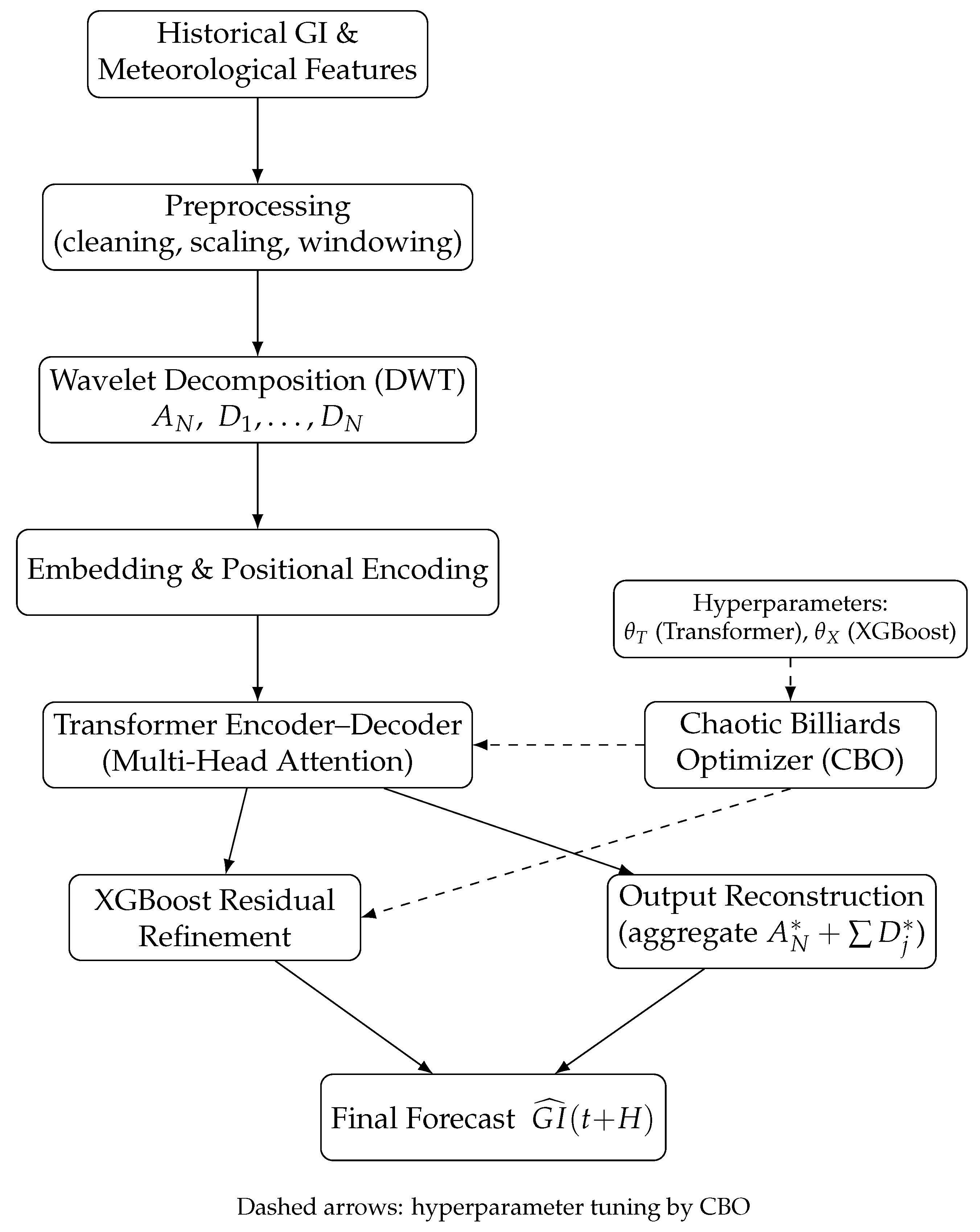 APA StyleMchara, W., Cicceri, G., Manai, L., Raissi, M., & Albaqami, H. (2026). Hybrid Wavelet–Transformer–XGBoost Model Optimized by Chaotic Billiards for Global Irradiance Forecasting. Journal of Sensor and Actuator Networks, 15(1), 12. https://doi.org/10.3390/jsan15010012