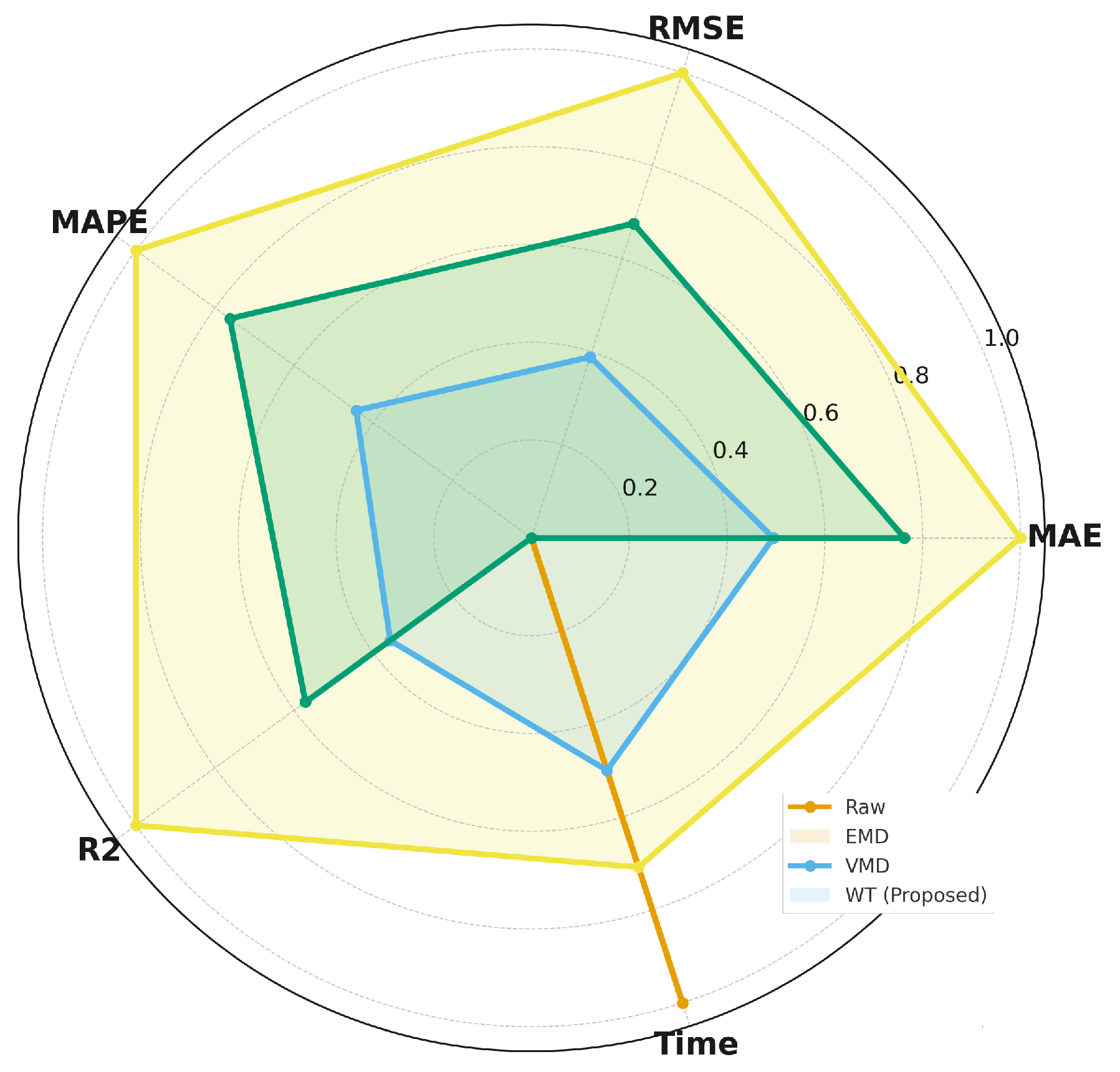 | Decomposition Method | MAE | RMSE | MAPE (%) | R2 | Time (s) | Observation |