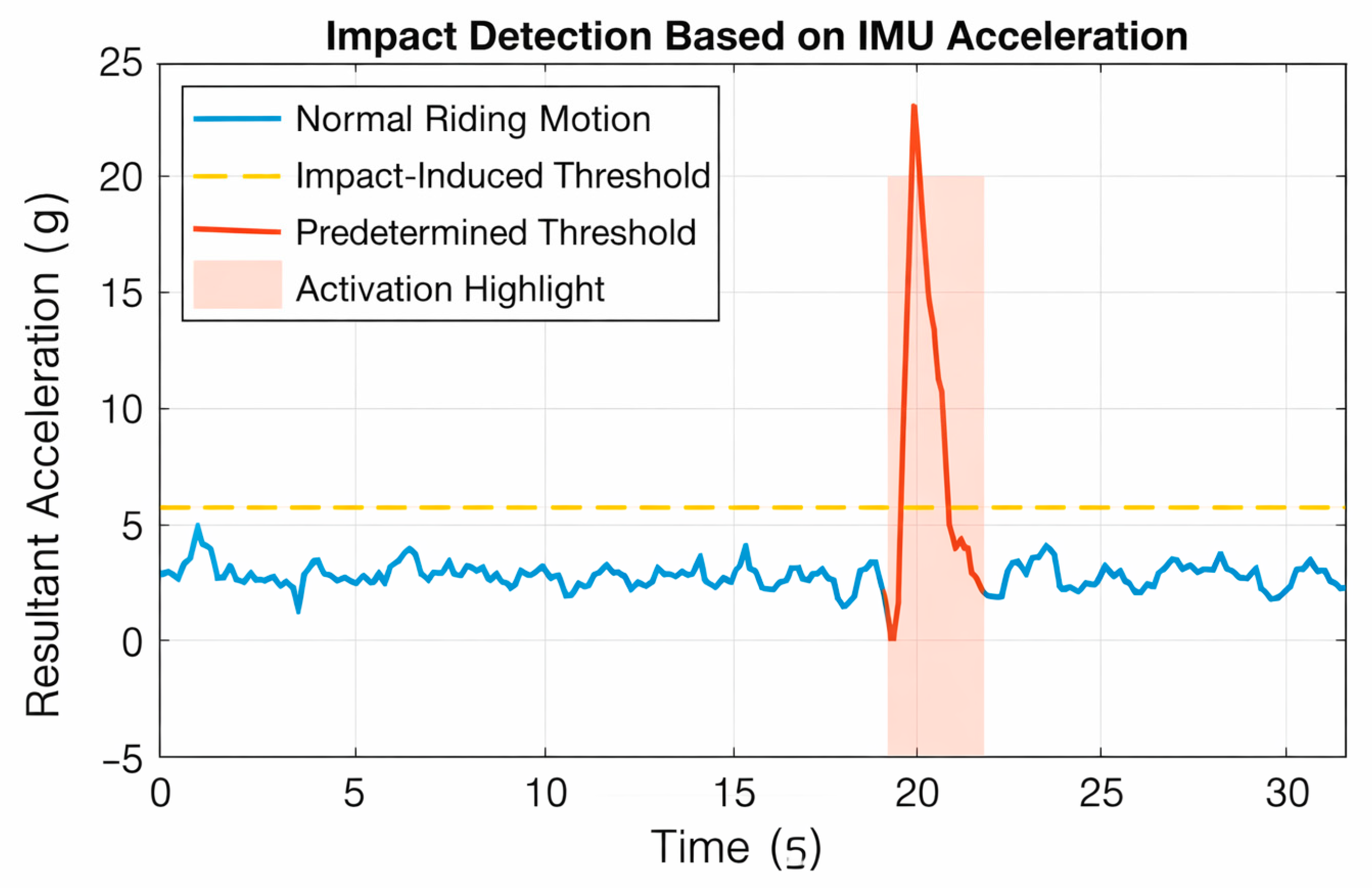 1]. Follow up research was done on how to enhance the reliability of detection by optimizing signal-processing pipelines and multi-axis motion analysis to differentiate between normal riding behavior and events of accident magnitude [