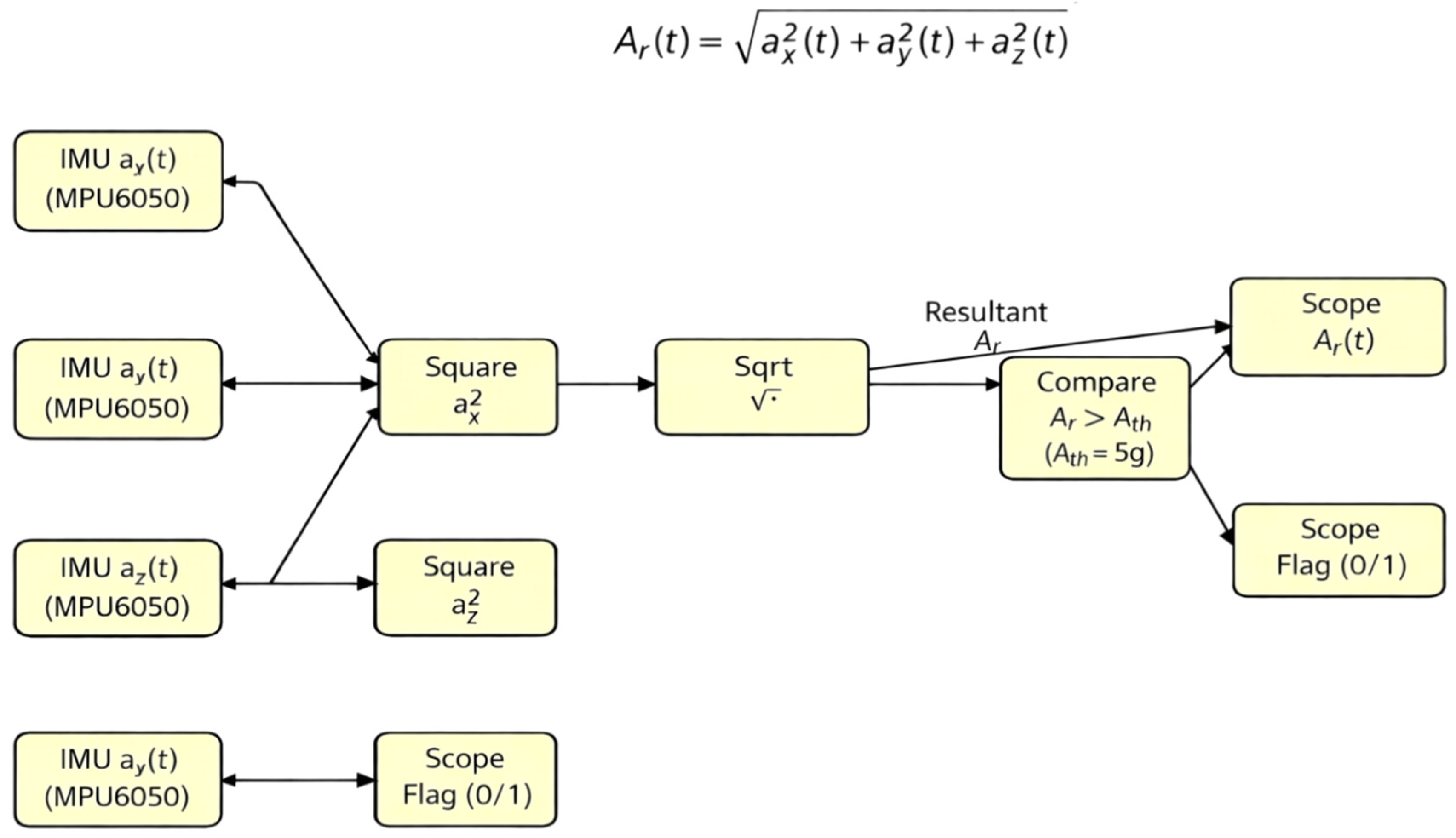According to MATLAB, the entire system operation was checked by simulation of the accident detection logic on the resultant acceleration based on tri-axial IMU.