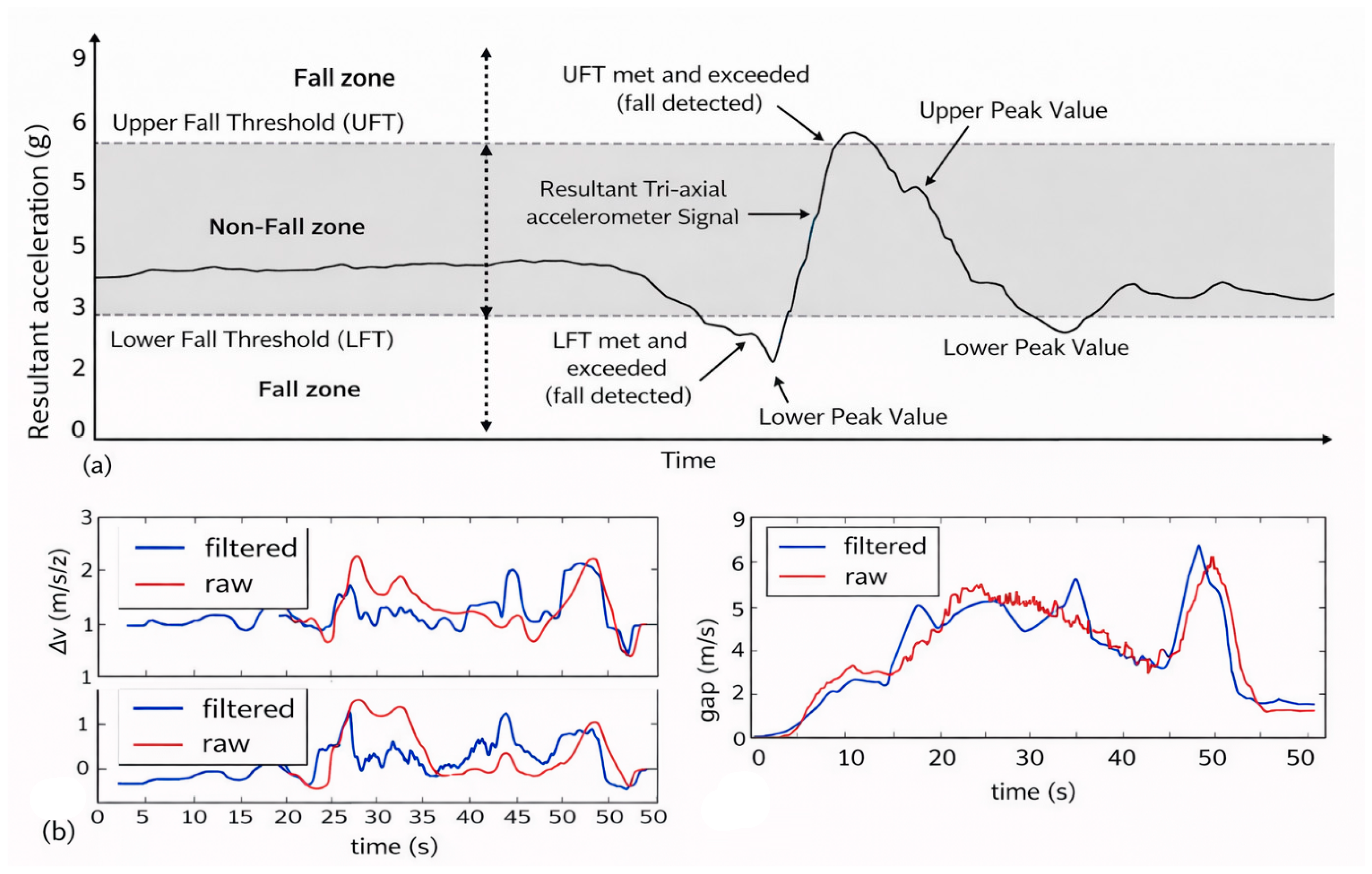 15]. More recent systems utilize several sensors (accelerometers and gyroscopes) to minimize false positives and enhance the accuracy of detection by sensor redundancy [